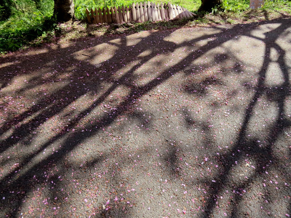 不時有花瓣飄落下來,拍不到空中的,只拍得到地面的,再過幾天應該就會變成粉紅花毯。