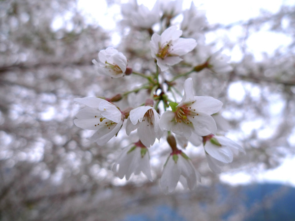 白色櫻花的花朵不大,從這裡可以看見對面遠處的「櫻木花道」。