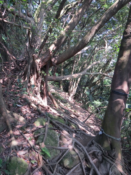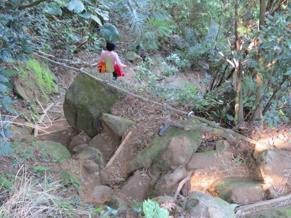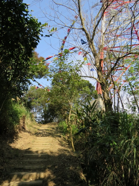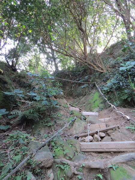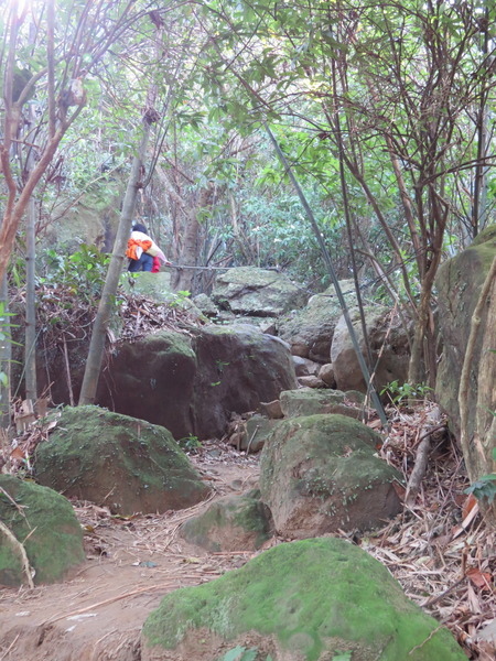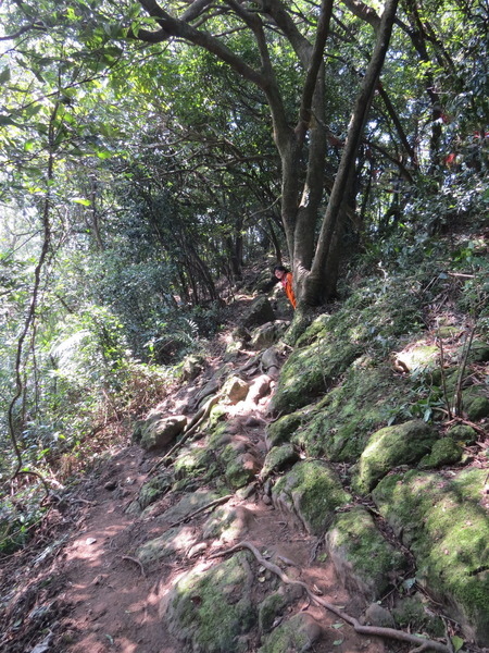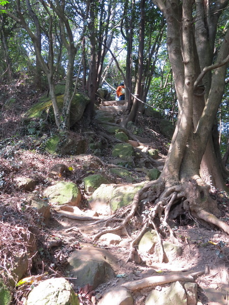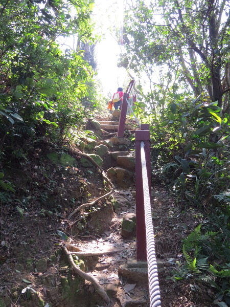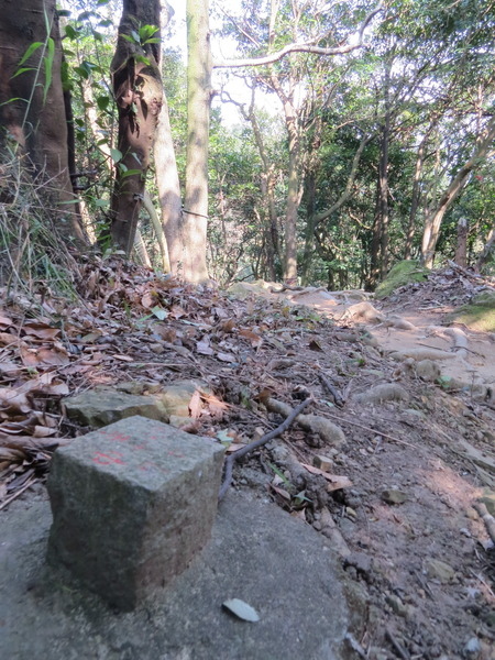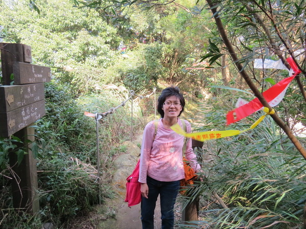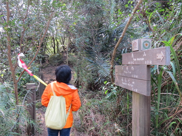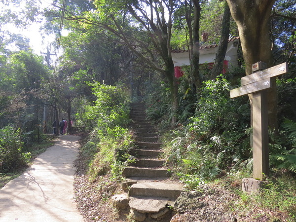 碑的前方出現岔路,石階往上往鳶山山頂,據說無基石,所以我們先直行往「福德坑山」撿三角點。