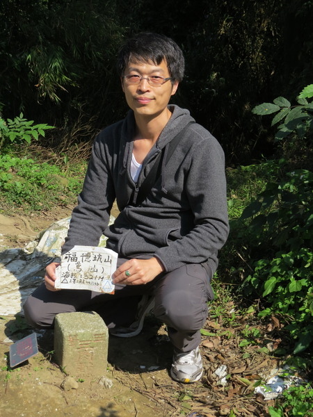 山頂標示牌上寫:「福德坑山(鳶山)」,歐都納小百岳就是把這裡當成第19座小百岳~鳶山,海拔321公尺,三等三角點1103。