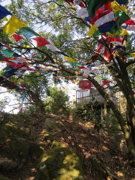 繼續往前,附近掛滿藏傳佛教的五色旗,很醒目。