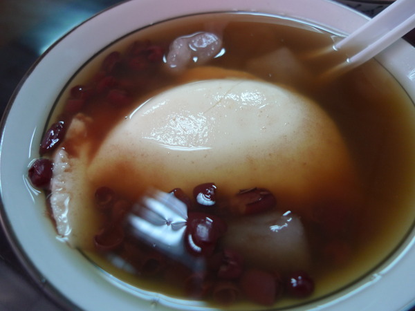 另外再點一碗「紅豆芋圓」,老闆娘問:「豆花要不要?」我們以為是問還要不要先前點的那碗豆花,於是回答:「要」,結果上桌時變成「薑汁紅豆芋圓豆花」(30元),一樣好吃。