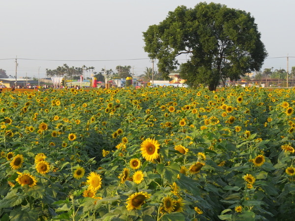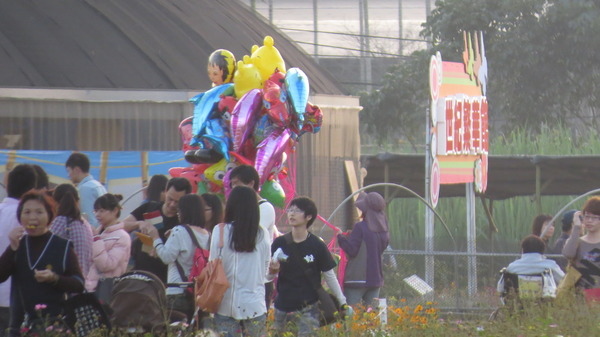 下午四點半來到新社花海的會場,首先映入眼簾的是一大片的向日葵田,空中飄著三顆大氣球,正好是測試長焦段的好機會!