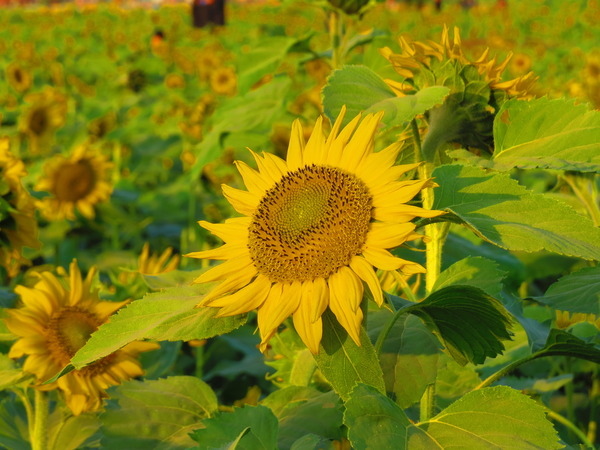 把鏡頭稍微拉近些,一棵棵的向日葵填滿畫面,好熱鬧的感覺。