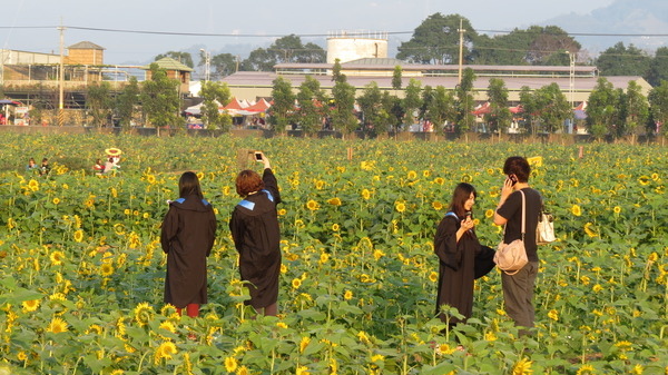 把鏡頭拉近,幸福的大學生們已經在拍畢業照了。