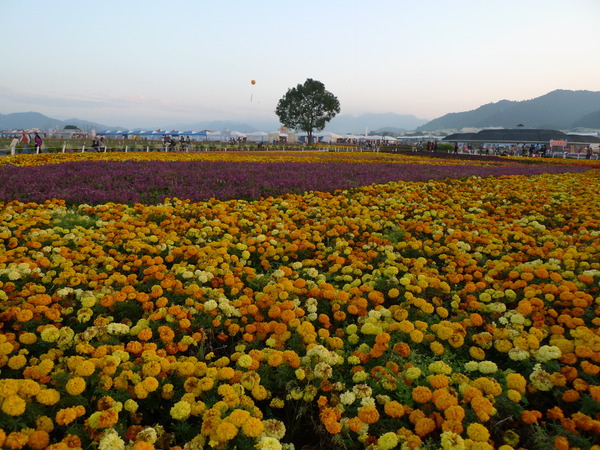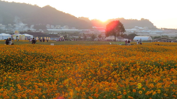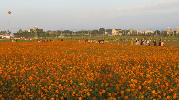 接下來來到黃波斯菊田,一大片橘黃色花毯,很壯觀。