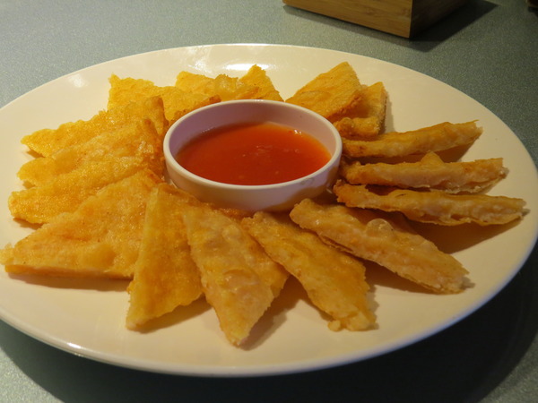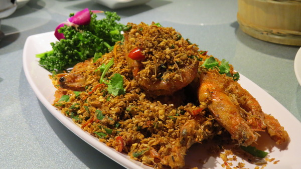 一上桌,濃濃的香料味撲鼻而來,我們並不喜歡這種香味,還好吃起來完全沒有味道。蝦殼炸得非常酥脆,整條吃下去更夠味。