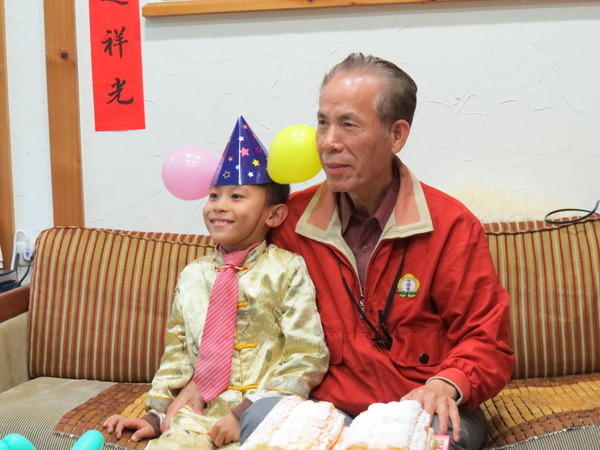 爺爺好開心終於可以卸下頭上的生日帽,開開好開心終於可以換他戴,爺爺和開開是最佳拍檔!