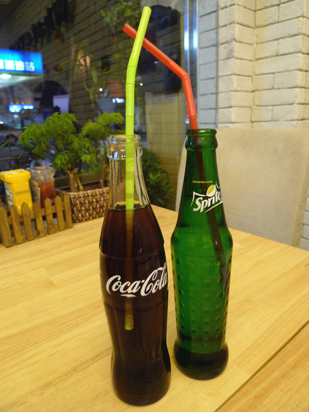 曲線瓶可樂、雪碧,可續杯,吃完已經飽到根本無法續了!