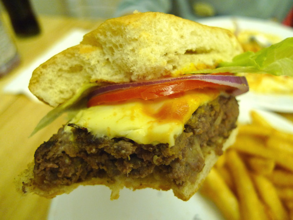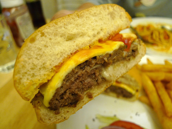 漢堡肉很厚,細嫩有汁,比對面麥叔叔家賣的好吃多多,可惜麵包太乾了。