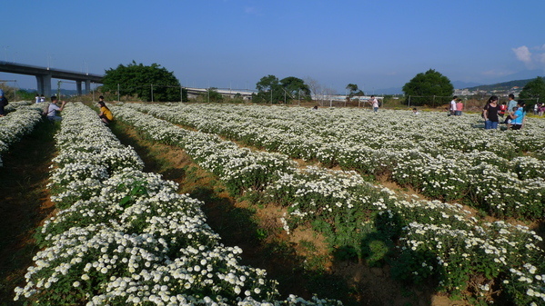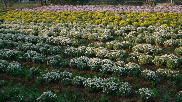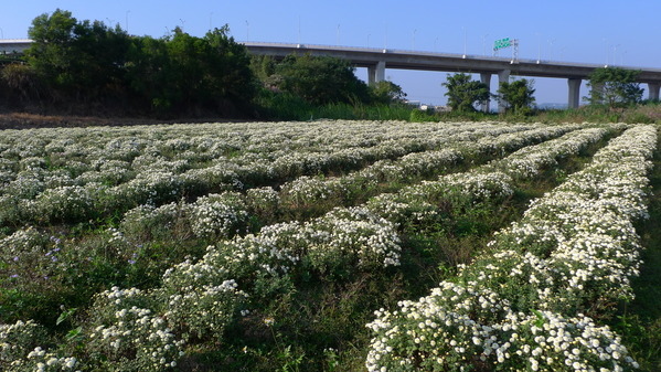 河堤附近就有一區花田,首先映入眼簾的是黃色杭菊。