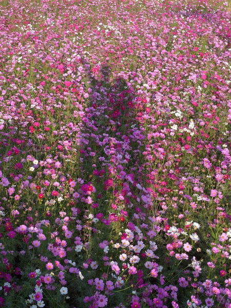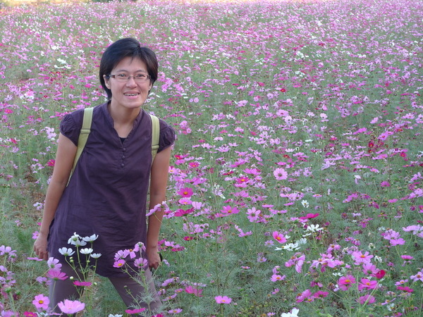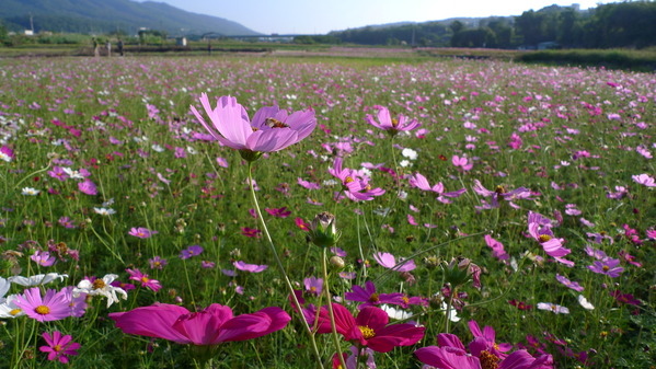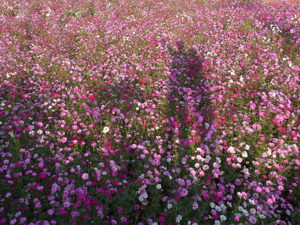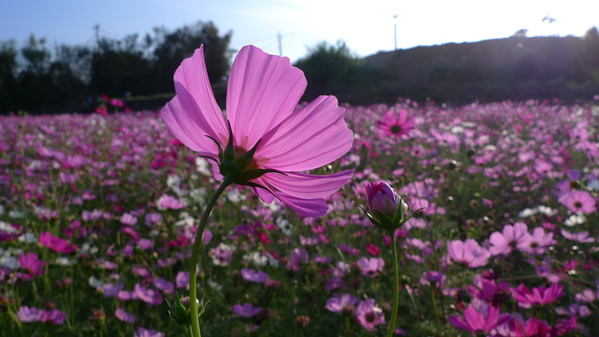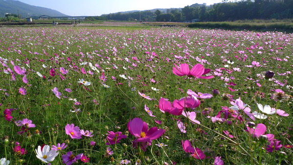 馬路對面又是成片的波斯菊花海
