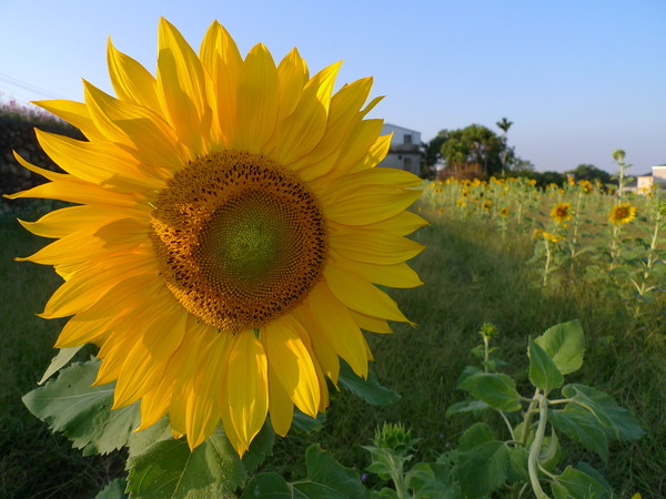 深秋了,竟然還能看到向日葵花田,喜出望外。