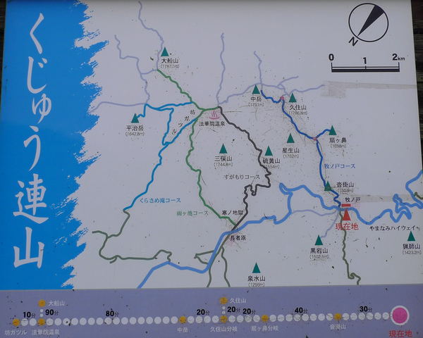 牧ノ戸峠--30min--沓掛山--40min--扇ケ鼻岔路--20min--久住山岔路--20min--久住山頂--20min--久住山岔路--20min--中岳