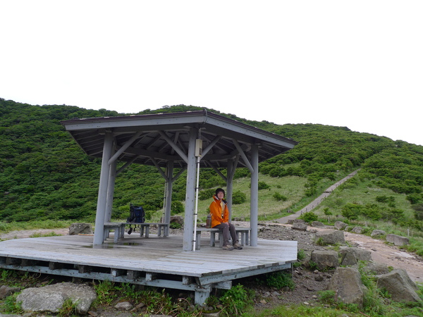 10:15久住山岔路口的「避難小屋」,紅色的是廁所,挺乾淨的。
