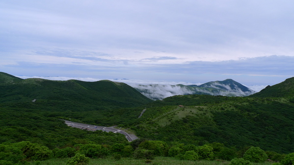 早上8:20來到海拔1330公尺的「牧ノ戸峠」,這裡是「Yamanami Highway」的公路最高點,今天雖然雲層很低,但是沒有下雨就謝天謝地了。