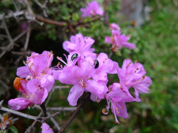 再走一段之後,陸續出現一叢叢的霧島杜鵑,山坡上也是,開得好鮮豔,好漂亮,開心開心開心!