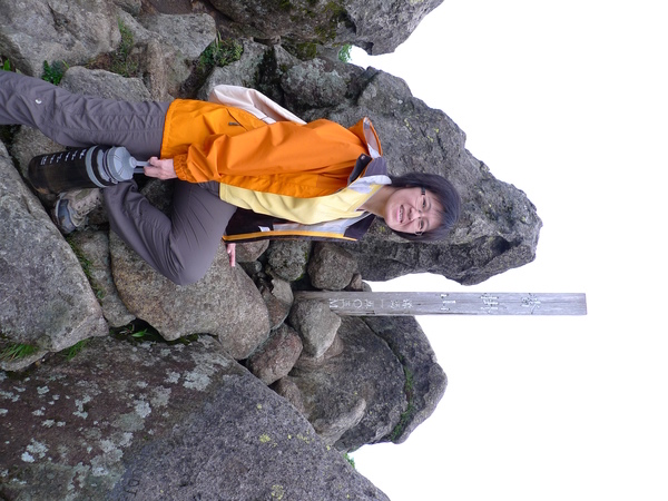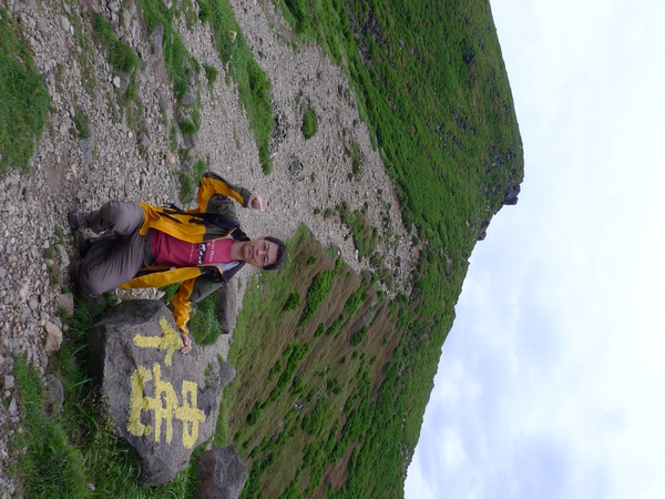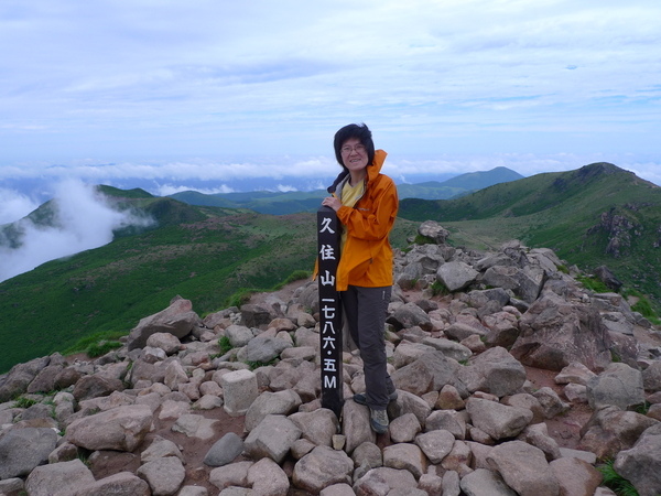 10:45踏上「九重群山」的主峰~「久住山」最高點,海拔1785公尺,山頂的風宇宙超級無敵大,人快要變成風箏被吹上天了。