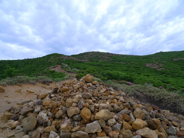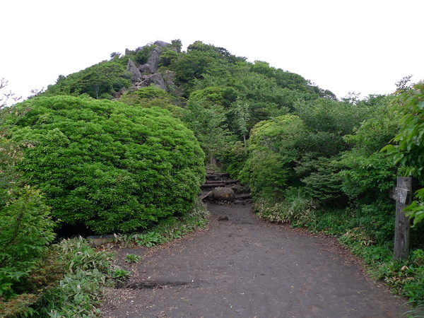 前方凸起的山頭就是「天狗ケ城」,路邊有一些零星的「霧島杜鵑」。