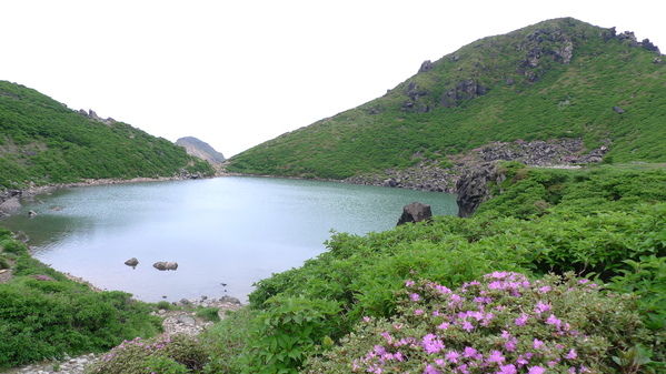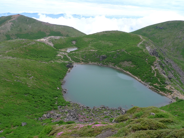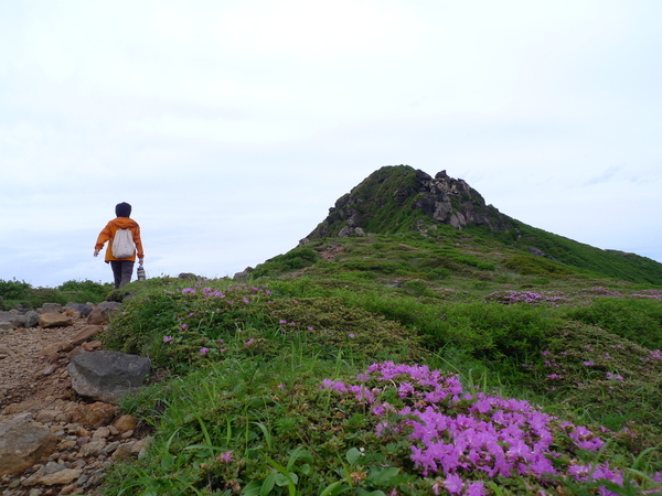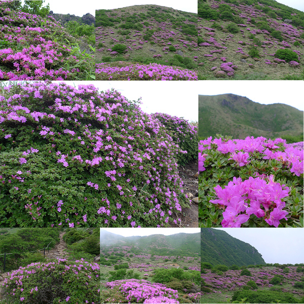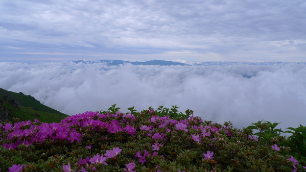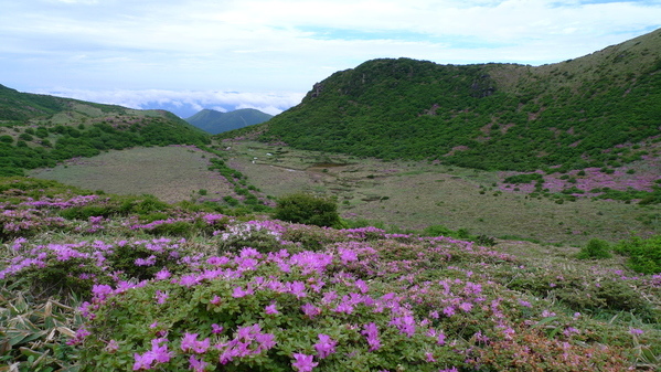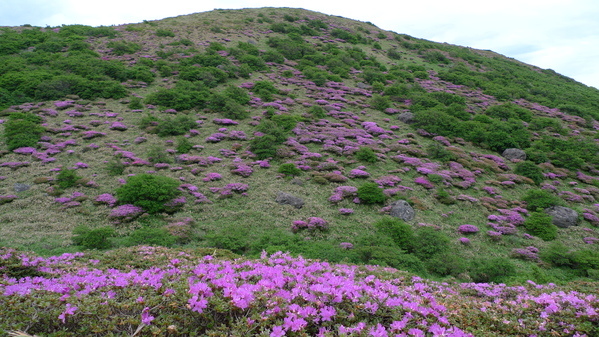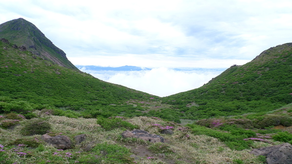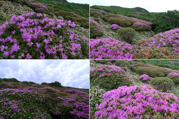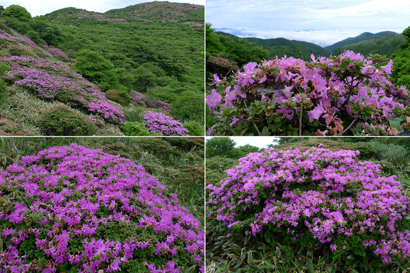 「西千里濱」和「扇ケ鼻」一帶可以欣賞到成片成片的杜鵑花海,此時開始有雲層飄上來,還好我們早早上山,如果現在才上山,爬到山頂時景色應該都被雲霧遮蔽了,爬山還是要趕在正午之前登頂視野才會比較好。