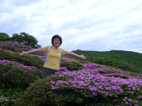 「扇ケ鼻」是「霧島杜鵑」的精華地區,所以走上去看看,一上坡就是看到成片的粉色花海,好美,好興奮啊!