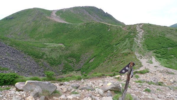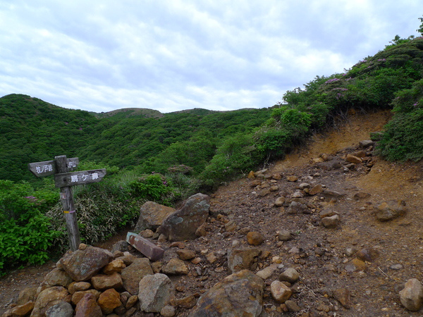 賞花拍照之後,原路退回,繼續向「久住山」前進,途中又一處登「扇ケ鼻」的岔路(9:48)。