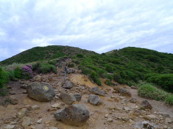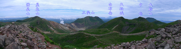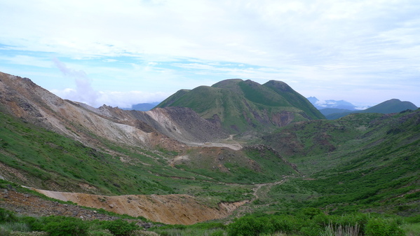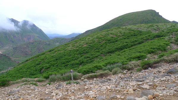 這一段路視野開闊,可以欣賞「硫黃山」噴氣口、「北千里濱」和「三俣山」。