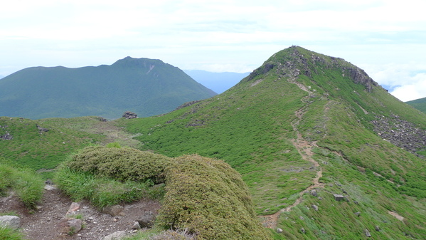 回望「九重群山」的主峰~「久住山」,今天最難走的一座。接下來又要回到「霧島杜鵑」的精華地區。