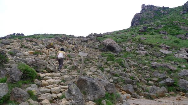 前方就是「久住山」,從「星生崎」到攻頂,一路陡上走在火山岩間,風勢強勁,景色單調,走來辛苦,好不容易終於要抵達了。