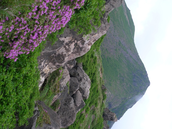雖然山高風大,崖邊的「霧島杜鵑」依然艷然綻放。