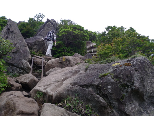 「沓掛山頂」是凸起的石堆,垂直陡下木梯才能離開山頭。