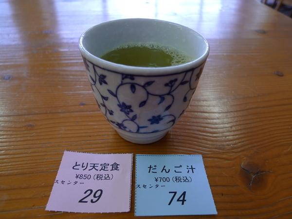 登山口旁的這家餐飲店可以選擇的餐點不多,我們點了「團子汁」和「雞肉天婦羅」。