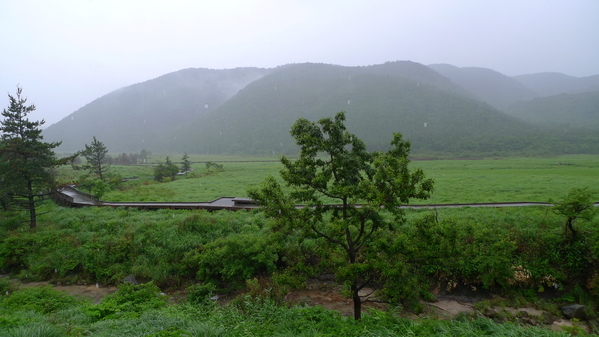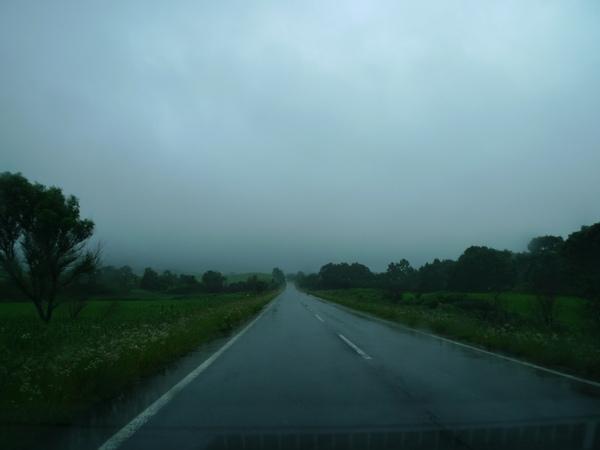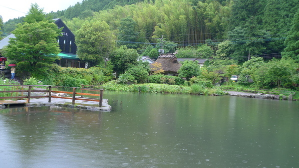 沿著621號道,滂沱大雨中,開車兜風享受森林浴的感覺也不錯,經過被選定為「富裕國家名水15選之一」的「男池」,可是雨大到不敢開車門。