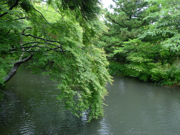 跟著指標,撐著傘,沿著大分川的源頭~「鴨川」散步,挺詩情畫意的。