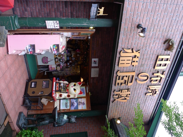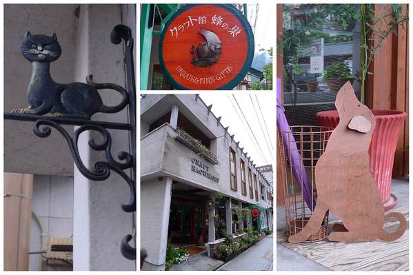 轉入「湯之坪商店街」,這家店專賣「貓」玩意兒,門口站著的黑貓最靚!