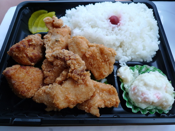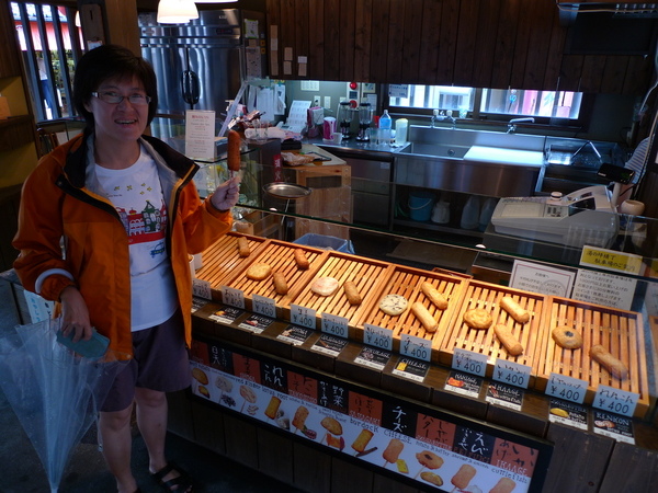 在小鎮上亂走亂逛,不知不覺已經下午四點多了,還要開山路回去高原上的「虎之湯」住宿,於是決定買便當回山上吃,兩人各選一家店比較看看: