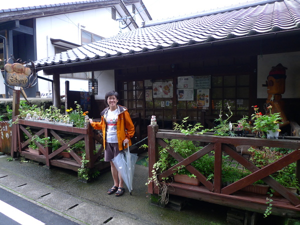 第四天的行程原定是要去征服九州屋脊~「九重連峰」,但是半夜裡風雨大作,屋頂上的雨聲吵得我們無法入睡,一早打開電視,颱風果真來了,而且雙颱共伴,附近的學校都停課,昨天才去過的臼杵一帶還要注意海嘯警報。