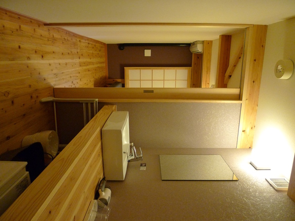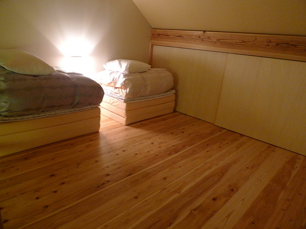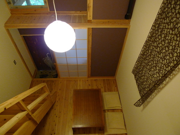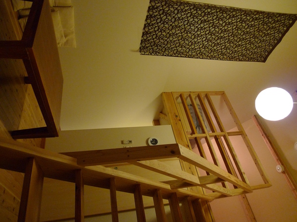客廳上面的二樓夾層是睡覺的地方,兩套寢具等著我們自行鋪床。