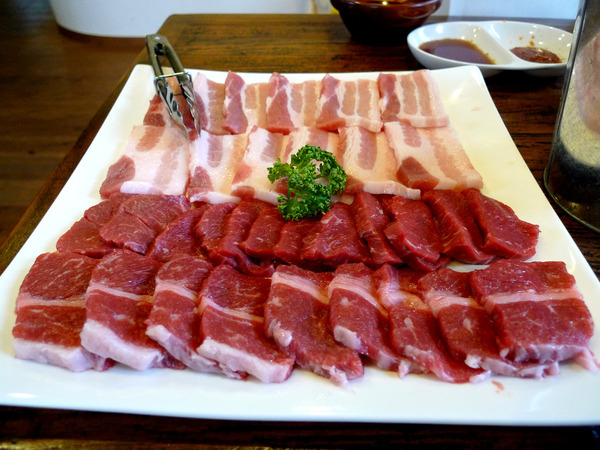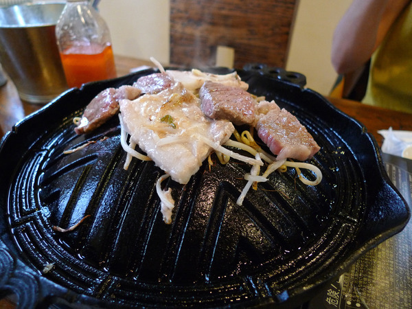 「豐後牛餐」~牛肉和豬肉,兩人份就這樣一盤,剛開始還擔心夠吃嗎?最後吃得好撐。