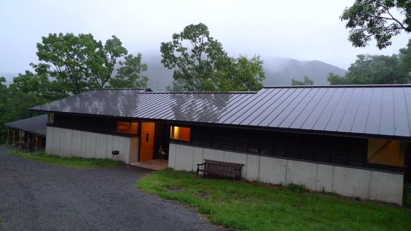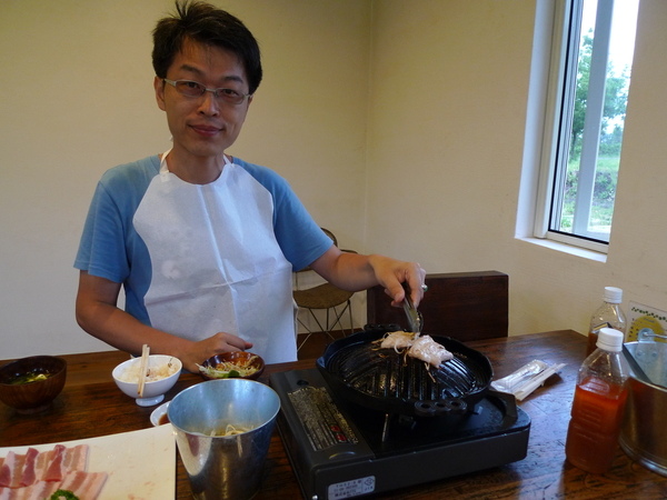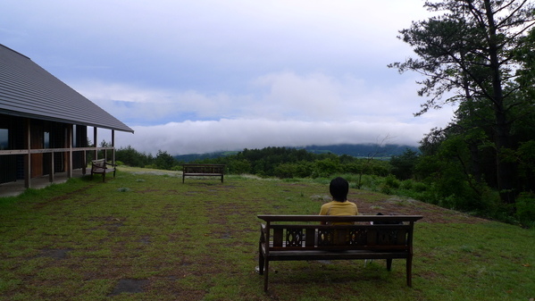 泡完湯之後,坐在木屋前舒服的長凳上看雲賞景,儘管這幾天適逢梅雨外加颱風來襲,景色都被雲層遮蔽了,光是悠閒地坐在這裡就是人生一大享受。