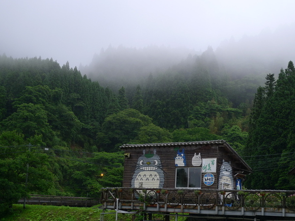 我們從臼杵接上「錦屏環山公路」之前,先經過「湯平溫泉」這間可愛的「豆豆龍之家」,附近山路蜿蜒,雨中開車有一點辛苦。