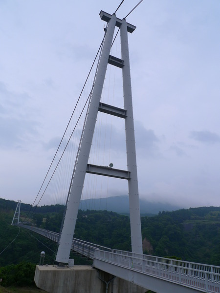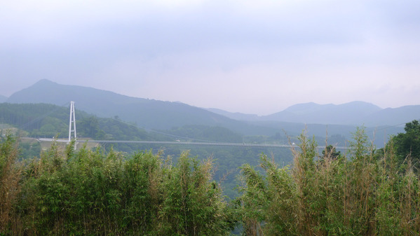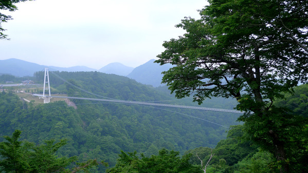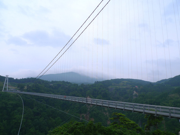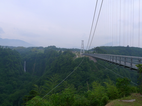從北端入口遠望「南端中村」出口,吊橋上是欣賞日本百大瀑布之一的「震動之滝」的最佳地點。