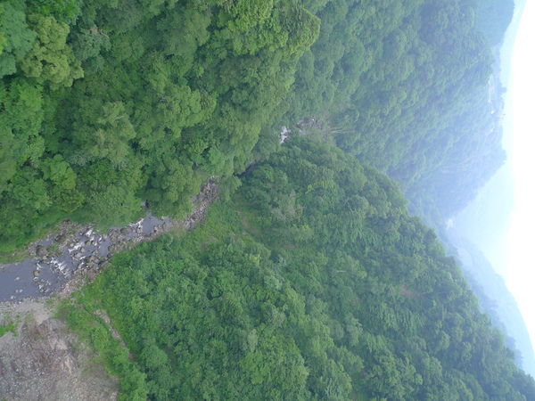 吊橋下是深達173公尺的「鳴子川」,更遠處縹緲的V型河谷就是秋天時以紅葉聞名的「九醉溪」,這個季節來,景色真的頗單調。