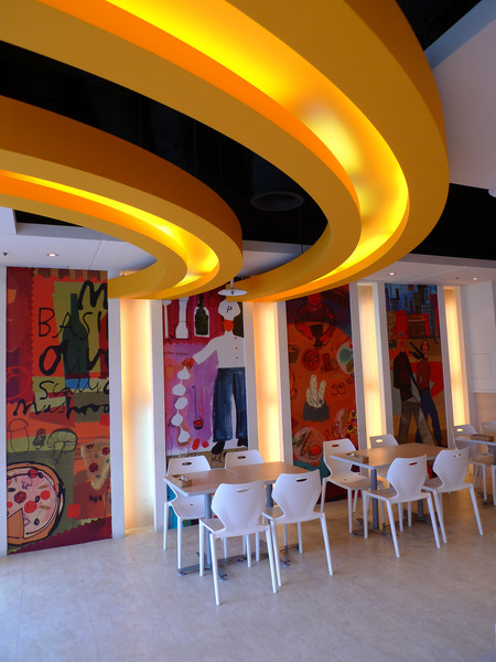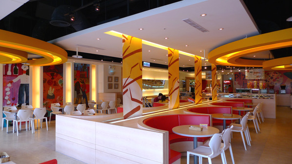 除了我們選坐的靠窗四人座,進門右側也有四人座位,這一區的壁畫挺漂亮的,只是桌椅的造型沒能搭配設計。