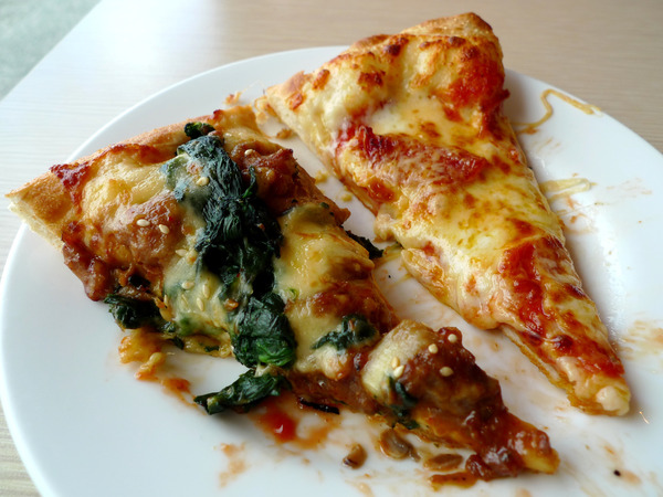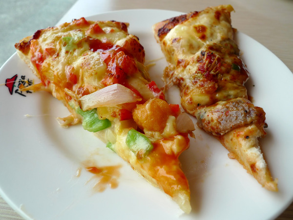 甜甜的「糖醋蝦球披薩」不太合我們的口味,比較起來「韓式泡菜燒肉披薩」好吃多了。