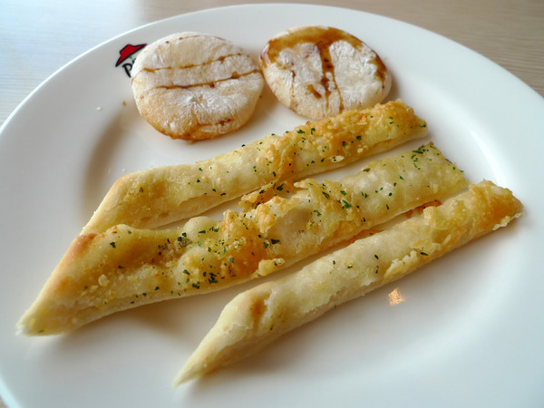 外酥內軟的「黑糖小團子」,可惜會黏牙,還有不太優的蒜泥麵包。