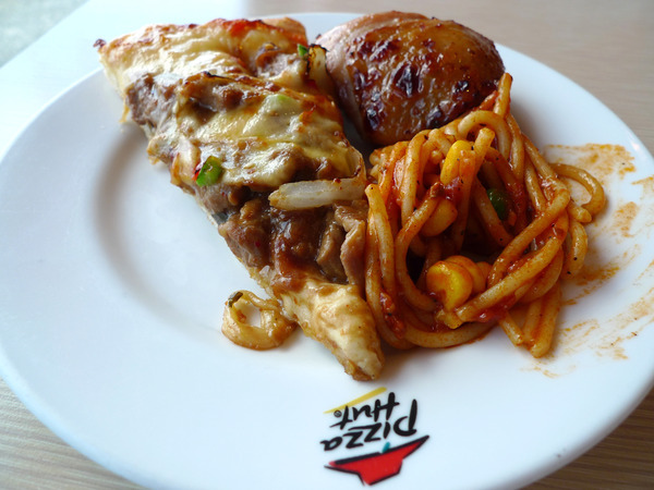 「一番燒肉比薩」、烤雞塊、蕃茄義大利麵,不知是已經飽了,這幾道感覺都很普通。