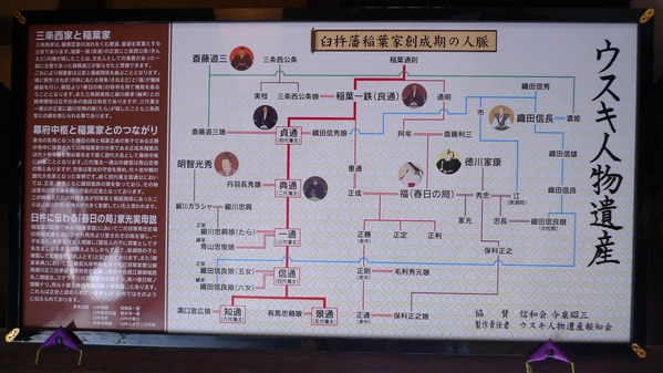 牆上掛著這個圖表,稻葉家和德川家光(第三代將軍)的奶媽春日局好像有家族關係。