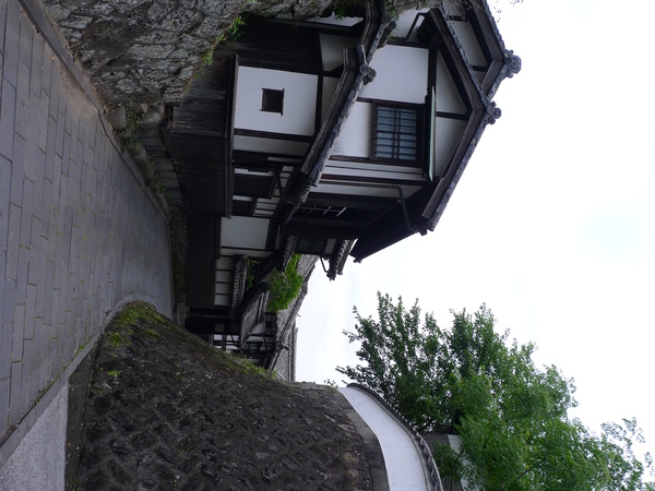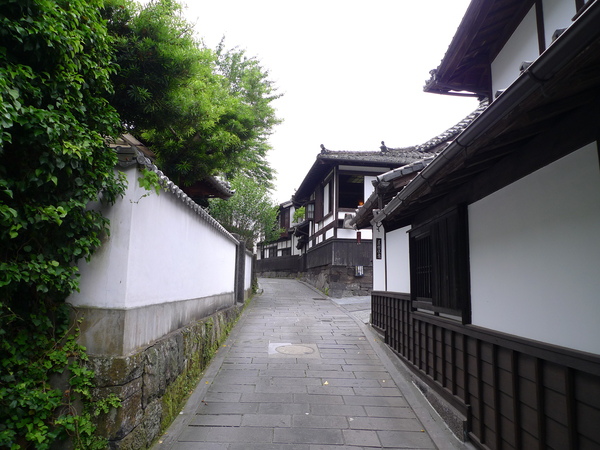 解遊摺頁中說:「二王座」附近的緩坡是阿蘇的火山灰凝結而成的,這條「二王座歷史之路」是鑿開火山石鋪成的石板路,兩旁都是白壁、石牆、木窗、黑瓦,和中津、杵築的老街氣氛又不同了!
