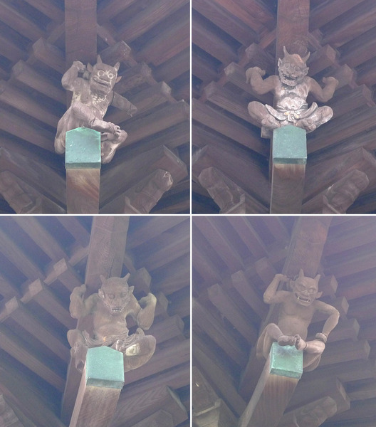 倒是在最底層的塔簷下發現四個角落各有一個撐著屋角的「天邪鬼」,表情、長相、動作都不一樣,很可愛。